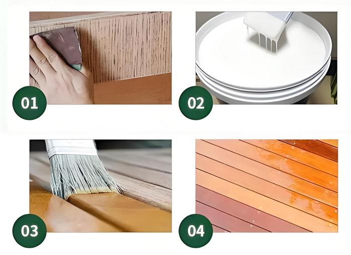 সারফেস প্রিপ: কাঠ অবশ্যই পরিষ্কার, শুষ্ক, শব্দ এবং দূষক মুক্ত হতে হবে (ধুলো, গ্রীস, পুরানো ফ্ল্যাকি পেইন্ট/বার্নিশ)। স্যান্ডিং সাধারণত আনুগত্য জন্য অপরিহার্য. প্রাইমার প্রায়ই প্রয়োজন হয় (উৎপাদক-নির্দিষ্ট প্রাইমার ব্যবহার করুন)।